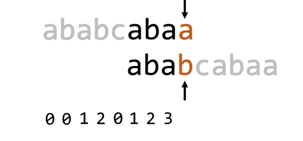 遇到不同的字母,暴力选择将 j 前移,但是观察可知,前面 abab